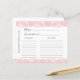Rosa Spitzen-Design. Einfach und elegant. Dieses Brautparty Recipe Cards Template kombiniert zwei verschiedene Schriftart für ein dynamischeres Aussehen. Größe der Karte ist 4,5' x 5,6' PAPIERSTYLES _____ Halbschweißtafel 12,5 pt Dicke / 110 lb Gewicht dünn, mit weißem, halbglänzendem Endpapier ______ Satin 5,2 pt Dicke / 80 lb Gewicht dünn, leichtes, Standard-Weißdruckpapier. Für den Fall, dass Sie eine Anpassung für das Design benötigen ich kann mich jederzeit an mich wenden : szdesigns2021@gmail.com