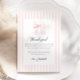 Elegante minimale Babydusche Dankeschön-Karte mit einem rosa-weißen Streifen Muster und einem niedlichen Bogen.