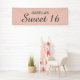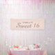 Elegant rot Rosa Sweet 16 Banner mit grauem Skript Personalisiert mit dem Namen des Gastes der Ehre. Wählen Sie aus verschiedenen Größen. Für drinnen oder draußen bestellen.