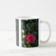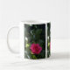 Eine weiße Tasse mit rosa Rosenpaneelen und der Aufschrift "Mit Liebe". Spülmaschinen und Mikrowellen geeignet.
