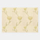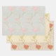 Die drei Packpapierblätter sind Farbvarianten eines Vintagen Musters, "Garden Tulip", Tapete von William Morris (1834 - 1896), ab ca. 1885, jetzt im öffentlichen Bereich. Die erste hat rosa Tulpen auf blauem Hintergrund, die zweite eine gelbe Tulpe, die dritte eine rote Tulpen. Alle haben kleine Blumenmuster im Hintergrund neben den Tulpen.