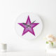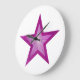 Modernes Design mit einem "leuchtenden" rosa und weißen Stern auf weißem Hintergrund. Wall Uhr mit individualisierbarem Design für Sie, um mit Ihrem eigenen Text, Bildern und Ideen zu personalisieren. Bitte beachten Sie, dass es sich um ein gedrucktes Bild handelt, das mit Originalfotos und Digitaltechnik erstellt wurde, es nicht glänzt oder echte Glitzern enthält.