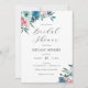 Bridal Dusche Einladung mit Aquarell Rosa und Marineblau Blumen und Grün. Passen Sie Ihre Veranstaltungsdetails an, um die Braut zu feiern.