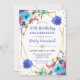 Rosa und blaue Frühlingsblumen Rahmen 50. Geburtst Einladung