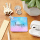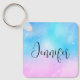 Personalisierter Schlüsselanhänger mit einem skurrilen Hintergrund. Ein pastellrosa und blaues Farbschema mit Farbverlauf. Kleine weiße Sterne verstreut herum. Whimsikisches und magisches Design.