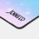 Schreibtischmatte mit einem skurrilen Hintergrund. Ein pastellrosa und blaues Farbschema mit Farbverlauf. Kleine weiße Sterne verstreut herum. Whimsikisches und magisches Design.