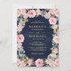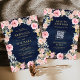 Rosa und Gold Floral QR Code Navy Blue Wedding Einladung