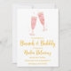 Mit diesem schicken und trendigen Design stärken Sie Ihr Brautparty. Dieses Design mit einer zarten Rosa- und Goldflasche aus Champagner und niedlichen, modernen Blumenelementen eignet sich hervorragend für ein Brunch-Fest. Die botanischen Details sorgen für eine Touch von natürlicher Schönheit, während die Farbtöne eine sanfte und feminine Atmosphäre schaffen. Diese Einladung wird Ihre Gäste beeindrucken und Set für ein unvergessliches Brautparty.