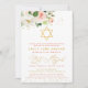 Laden Sie Familie und Freunde mit dieser anpassbaren rosa und goldene Aquarell Bat Mitzvah Einladung. Das Design besticht durch die floralen Aquarellbilder mit goldenen Punkten und einem Stern von David. Diese blumenreiche Einladung ist perfekt für einen Mädelsbiss eines Mädchens. Matching-Elemente sind verfügbar.