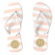 Rosa und goldfarbene Preppy-Streifen Monogramm Flip Flops