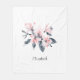 Eine personalisierte Decke mit einer hübschen Aquarell-Abbildung von rosa Blume mit grauen Blätter auf einem Single Stiel. Ein modernes, elegantes botanisches Design.