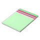 Mignons blocs-notes customisés pour les filles qui aiment les couleurs vives. Ces tablettes d'écriture disposent d'un arrière - plan vert vif avec des rayures horizontales roses chaudes sur le dessus. Personnalisez ces plaquettes de notes avec votre nom.