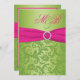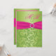Dieser IMITAT prägeartige Frühlingsgrünblumendamast mit einem heißen Rosa DRUCKTE Band und Druckjuwelschnallen-Hochzeitseinladung ist für ein pinkfarbenes rosa und grünes Hochzeitsthema, eine Frühlingshochzeit, Sommerhochzeit oder anderes spezielles Ereignis perfekt. Die Papierwahl ist auch kundengerecht. Wenn Sie irgendwelche anderen zusammenpassenden Einzelteile fordern oder dieses in einer anderen Farbkombination möchten, Ihren Antrag bitte emailen niteowlstudio@gmail.com