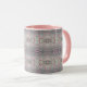 Rosa, aquamarin und graue, gemusterte Tasse in Aquarellfarben, das dunkelgraue Detail lässt sich auf jede Farbe umstellen, um Ihren Stil zu ergänzen. Fügen Sie Text zu personalisieren für sich selbst oder ein Geschenk.