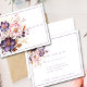 Elegante Antwortkarte für Ihren Garten, Atrium, Sommer, Frühjahrshochzeit. Die Karte ist mit wunderschönen rosa und violetten Blumen geschmückt.