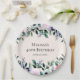 Teller aus Papier mit hübschem Blumendesign in Aquarellfarben. Rosa, lila und grüne Blume.