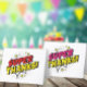 Superhero Comic Girl Geburtstag Dankeschön Karte. Fügen Sie Ihre Nachricht und Ihren Namen hinzu. Spaß Cartoon Geburtstag danke Ihnen Karte für ein Mädchen in Rosa und Gelb Farben.