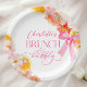 Blumenbrunch & Bubbly Brautparty-Papier-Teller in einem lebhaften Rosa- und Orangenmotiv und Coquette-Bogen