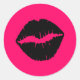 Schwarz-goter Lippenstift drucken vor heiß-rosa Hintergrund. Passen Sie diesen Smooch mit einer SMS für Ihren Schatz an diesem Valentinstag an.