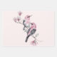 Umhüllungspapier mit Aquarellbild. 2 rosa und schwarze Vögel, die auf einem Baumzweig mit rosa Blüten sitzen.