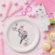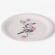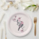 Rosa und schwarze Vögel auf einem Baumzweig Pappteller