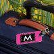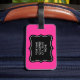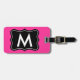 Rosa und schwarzer Gepäckanhänger. Personifizieren Sie Monogramm. Personalizable Namensbuchstabe für kundengerechten Entwurf der Reisetaschen und -koffer | für Reisende. Rosa oder irgendeine kundenspezifische Hintergrundfarbe. Niedliche elegante Geschenkidee für Frauen und Mädchen.