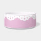 Hübsche Ösenspitze trimmt die Spitze dieser Haustierschüssel. Personifizieren Sie mit dem Namen von Ihrem wertvollen.