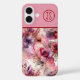 Rosa und violette Blumen Alkoholtink Mit Monogramm iPhone 16 Hülle