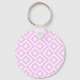 Dieses rosa und weiße geometrische Muster ist ein originelles Dekorationsdesign. Weiße Mäander drehen sich um blubblegum-rosa Diamanten, die weiße Diamanten enthalten. Rosa Zickzackgassen sorgen für eine feine Trennung zwischen den gewundenen Pfaden. Digitales Bild. Copyright © 2013 Claire E. Skinner. Alle Rechte vorbehalten.