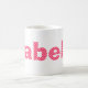 Erstellen Sie Ihr eigenes personalisiertes Pink-Weiß-Polodot-Design auf einer Kaffeetasse. Fügen Sie einen Namen hinzu, um Ihr eigenes personalisiertes Geschenk zu erstellen. Passen Sie den Stil und die Farbe des Schriftartes an. Die Designs funktionieren am besten mit weißen Hintergrundgeschenken.