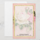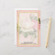 Papier mit Blumenstrauß mit weißen und rosa Blume. Der Hintergrund ist rosa mit einem Blumenmuster. Hübsches und elegantes Design. Eine halbtransparente Schicht oben mit einem Imitat Goldfolienrand. Personalisieren Sie mit einem Namen und einer Adresse, oder was auch immer Anzüge Ihre Bedürfnisse.