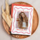 Dieses trendige, Retro- und moderne Graduiertenfest lädt Ihr Foto inmitten eines rosa gewellten Rahmens ein. Die Rückseite weist einen roten Hintergrund mit geometrischen Mustern in Rosa auf. Personalisieren Sie es für Ihre Bedürfnisse. In meinem Geschäft finden Sie passende Produkte.