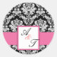 Rosa Wedelmongram Damask Siegel Runder Aufkleber