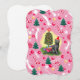 Das ist ein schönes, spielerisches, fröhliches rosa Weihnachtsdesign. Es zeigt eine schwarze Katze mit einem Weihnachtsbaum und ein Muster von Bonbons, winzigen grünen Bäumen, Schneeflocken und Sternschnuppen, die herumschwebend sind.