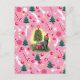 Das ist ein schönes, spielerisches, fröhliches rosa Weihnachtsdesign. Es zeigt eine schwarze Katze mit einem Weihnachtsbaum und ein Muster von Bonbons, winzigen grünen Bäumen, Schneeflocken und Sternschnuppen, die herumschwebend sind.