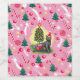 Schönes, spielerisches, fröhliches, rosa Weihnachtsdesign mit einer Illustration einer schwarzen Katze mit Weihnachtsbaum und einem Muster, das herumschwebt.