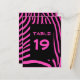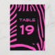 Zebra Streifen Muster in schwarz und Bublegum rosa mit Platz für eine Tischnummer. Sie können das Wort "Tabelle" anpassen und löschen und die Zahl zentrieren.
