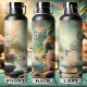 Elegante Wasserflasche mit rosa Kristall in einem Springbrunnen mit Zen-Lotus-Blume. Sie können Ihre eigenen Initialen oder andere Texte sowie Ihr Logo hinzufügen. Der Kreis ist eine separate Form und kann gelöscht werden, wenn Sie ihn nicht benötigen. Wunderschön für eine spirituelle Dame oder um bei Yoga-Kursen mitzukommen.