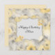 Tarjeta de felicitación para cumpleaños, un diseño elegante de acuarela en tonos suaves amarillos y grises de flores, ideal para personas que les guste el toque vintage minimalista. Se puede personalizar con el nombre o cualquier mensaje personal.