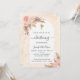 Ein Bogenrahmen und eine Rose mit goldenem Marmor als Hintergrund. Die Einrichtung ist mit Rose-Gold und rosa Blumen, Rose und Pampas-Gras dekoriert. Personalisieren und fügen Sie einen Namen und Details.