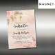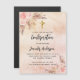 Eine Rose Gold, rötlich pink rustikal Hintergrund. Die Einrichtung besteht aus Rose-Gold und Rosa-Blumen, Rose, Pampas-Gras und einem goldenen Kreuz. Personalisieren und fügen Sie einen Namen und Details.