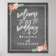 Herzlich willkommen bei der Hochzeit des Posters mit Kalkboard-Hintergrund und bemalten Rose.
