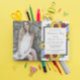 Das Design besticht durch elegante Sonnenblumen, Rose und Wildblumen mit einer goldgelben, roten und hellblauen Farbpalette. Das Design verfügt auch über einen kohlegrauen Rahmen. Sie können die Hintergrundfarbe auf der Vorderseite und zurück in die gewünschte Farbe ändern oder beide Set in Weiß verlassen werden. Bildvorlage, die über Pixabay unter CC0 lizenziert ist, muss durch ein eigenes Foto ersetzt werden