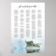 Ce somptueux tableau de sièges mariages présente une photo d'un rose bleu poudreux ou bleu poussiéreux à long tige, allongé sur son côté, réfléchissant dans un bassin d'eau avec vagues et ondulations. Le titre dit "s'il vous plaît trouvez votre table" dans élégante calligraphie de script en dentelle. Il y a de l'espace pour les 250 noms avec les noms du couple et la date du mariage ci-dessous. Une façon merveilleuse d'aider vos invités à trouver leurs tables tout en rendant votre réception plus belle.