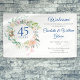 Dieses schicke Botanische Saphir-Begrüßungsbanner aus Saphir mit einer zarten, floralfarbenen Grünfläche personalisiert mit Ihrem Jubiläumsinformations-Set in eleganter Typografie. Entwickelt von Thisisnotme©