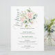 Weiße und pastellrosa Rosenbraun Aquarellbilder. Zweiseitige Hochzeitskarte mit den Farben Weiß und Olivgrün.