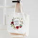 Die Tasche ist ein Geschenk für die Brautmutter, mit einem bordeauxfarbenen Kranz aus Aquarell in der Rose, in dem die Brautmutter in handgeschriebener Schrift eingetragen ist. Personalisieren Sie Ihre Hochzeitsdaten oder den Namen des Empfängers unten.