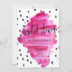 Super chic invitation à la douche nuptiale avec pointillé noir sur blanc arrière - plan avec aquarelle brossée rose chaud qui contient des informations de police sans serif élégantes et un script de fantaisie personnalisé
