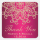 Une belle fête fuchsia et or vous remercie étiquettes et autocollants avec un sari ornemental exotique d'inspiration indienne comme motif médaillon avec un design floral et lotus. Cet autocollant élégant et magnifique de style indien moderne est parfait pour toute occasion formelle ou spéciale, y compris les fêtes mariages, fiançailles, d'anniversaire et d'anniversaire ou toute élégante liaison de cravate noire avec une soirée marocaine indonésienne orientale ou le thème aladdin. © Chrissy H. Studios, LLC. Tous droits réservés.