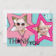 La partie aiment une vedette du rock ! Le rose se tient le premier rôle sur l'arrière - plan bleu d'aqua avec la fille chantant et dansant : hanche et carte de remerciements impertinent de vedette du rock.